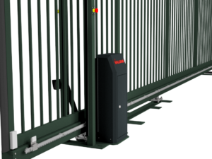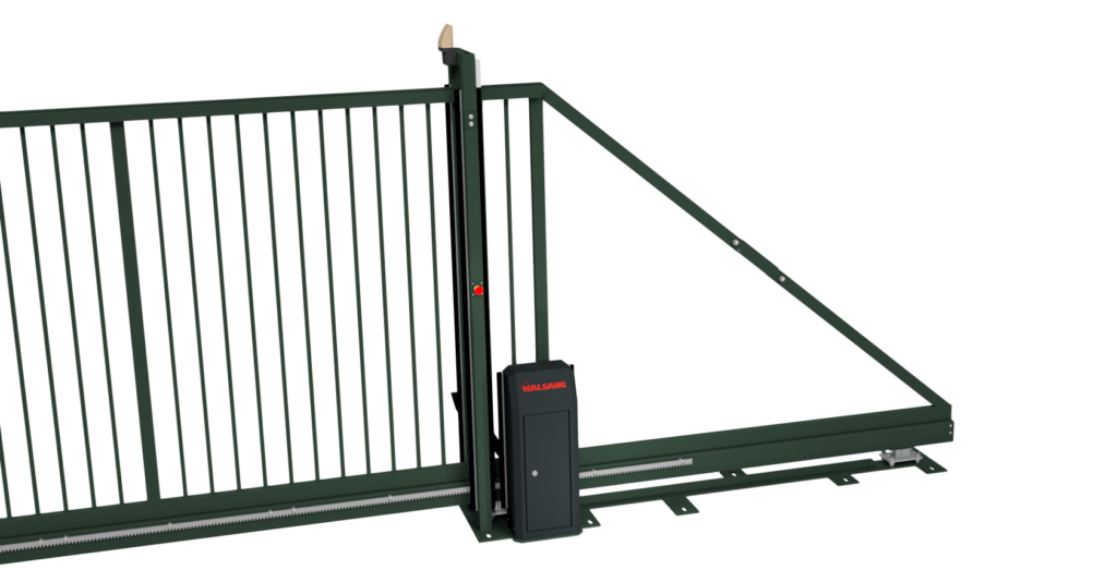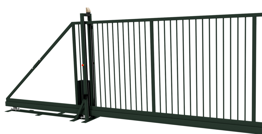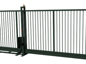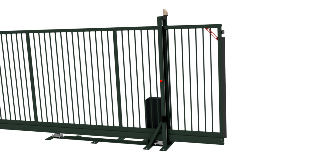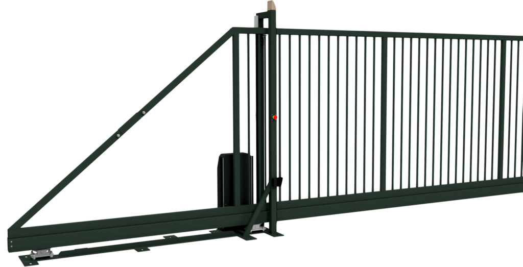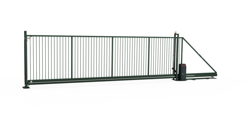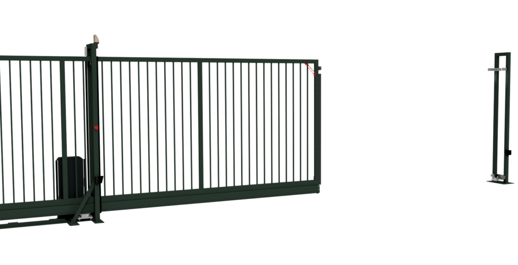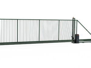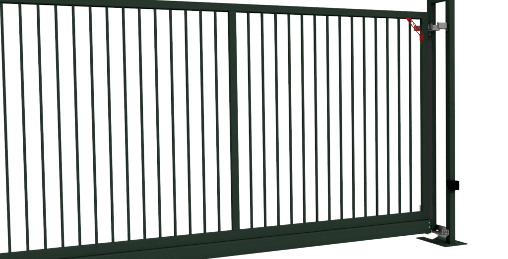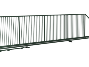 ODEN fribärande skjutgrind är en ekonomisk lösning för applikationer med mindre krav på öppning/stängning. Den är tillverkad i en helsvetsad konstruktion med en underbalk av specifik U-profil. Den svetsade grindramen består av horisontella fyrkantsprofiler och rektangulära profiler. Grindbladsfyllningen består av svetsade vertikala fyrkantsrör 20×20 mm med ett maxavstånd mellan stängerna på 100 mm.