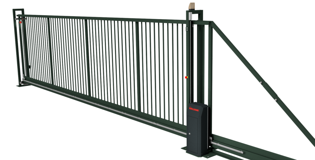 Fribärande skjutgrind för industriella applikationer med måttlig trafik.
