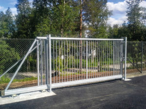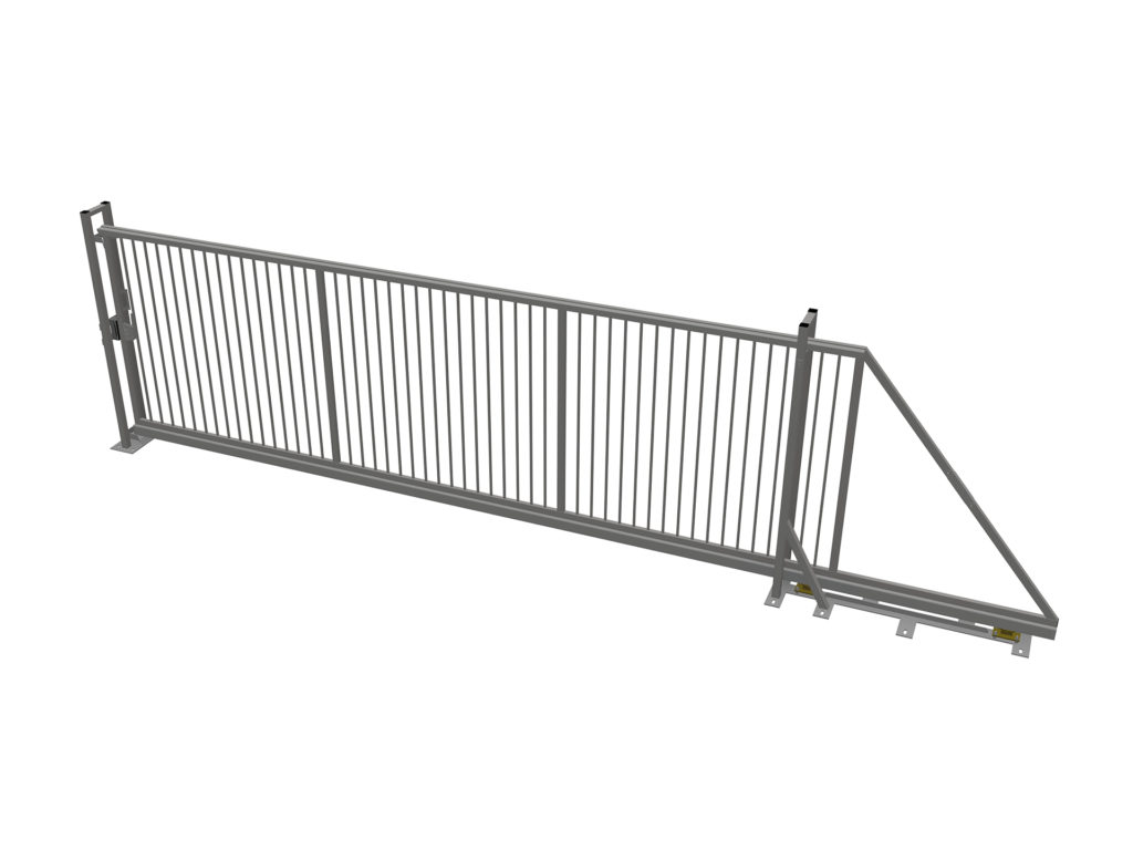 Levereras förmonterad, vilket ger snabb och enkel installation på plats. Grindbladet har ett handtag för manuell förflyttning.